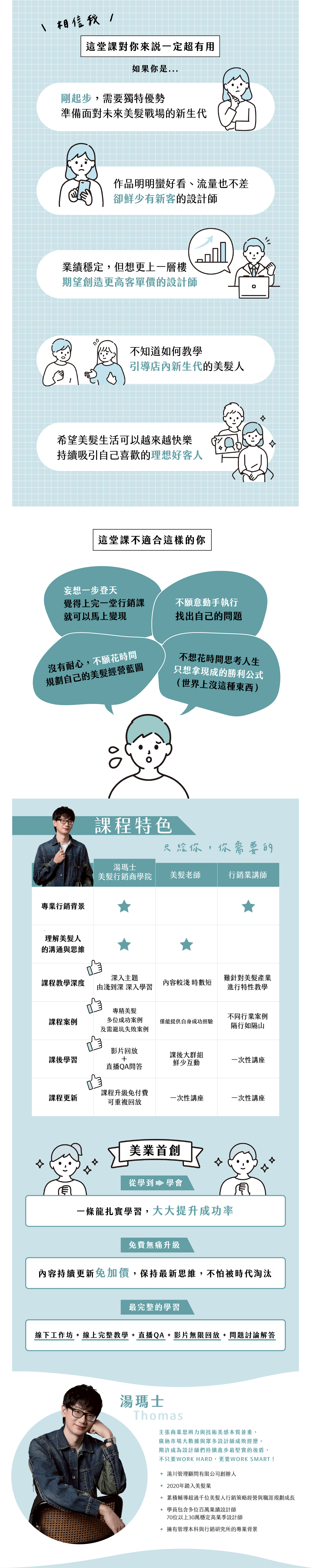 這堂課,將用系統化的架構、有邏輯的方法,確保所有美髮師都能釐清自己的理想受眾是誰,並學會如何順利不帶推銷感的成交他們。